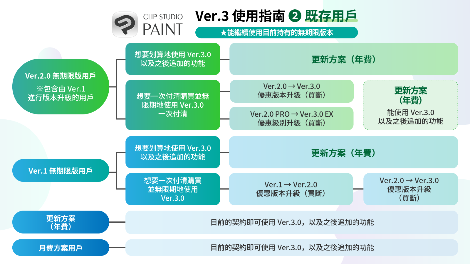 - (Ver.3.0發布後,以一般管道購買Ver.3.0)
