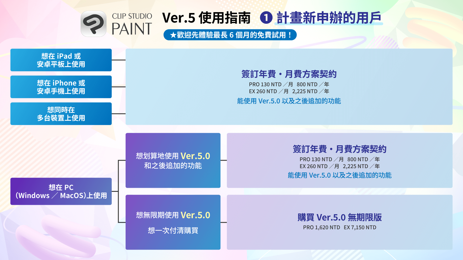 - 若希望一次付清購買並使用PRO,直接新購買Ver.5.0無期限版會最划算。