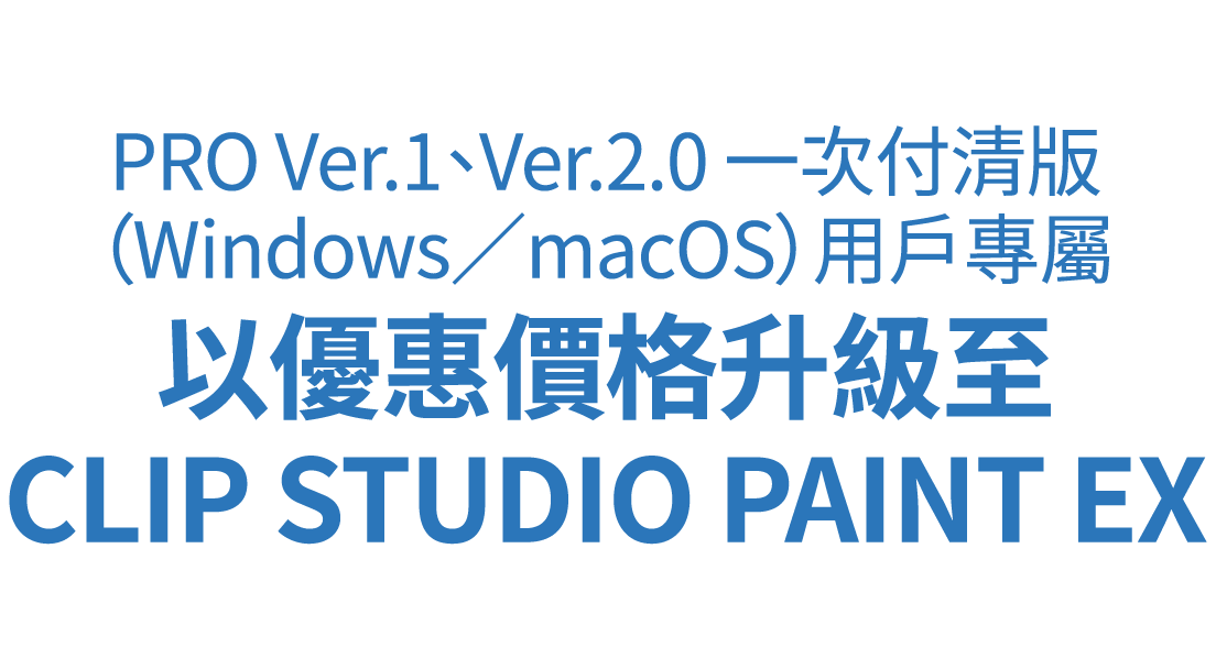 持有CLIP STUDIO PAINT PRO for Windows/macOS(Perpetual License)的用戶,能以優惠價格將級別升級為CLIP STUDIO PAINT EX(Perpetual License)!
