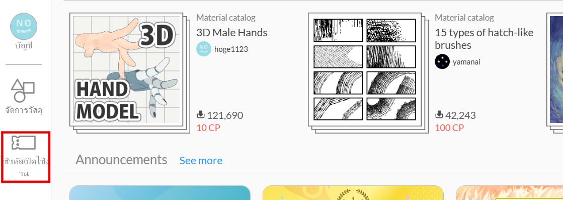 หมายเหตุ: คุณสามารถใช้รหัสเปิดใช้งานที่คุณได้รับในอีเมลรายละเอียดการซื้อได้โดยล็อกอินเข้าสู่บัญชี Clip Studio ของคุณ
