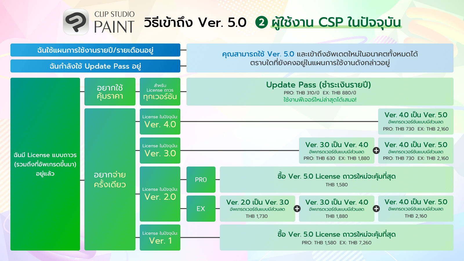 - สามารถซื้ออัพเกรดเวอร์ชันแบบมีส่วนลดจาก Ver. 4.0 → 5.0 หรือสมัครซื้อ Update Pass เพื่อใช้งาน Ver. 5.0 ได้