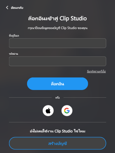 ③ ล็อกอินด้วยบัญชี Clip Studio