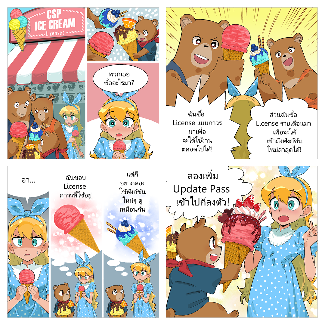 ถ้าคุณมี License แบบถาวร Update Pass คือวิธีที่คุ้มค่าที่สุดในการใช้ฟีเจอร์ล่าสุดของ Clip Studio Paint!