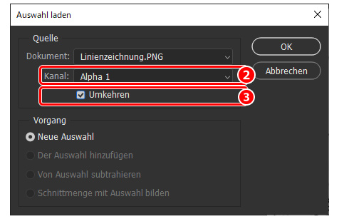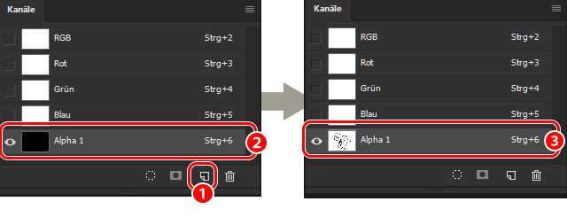 (2) Wähle den erstellten Alphakanal aus.