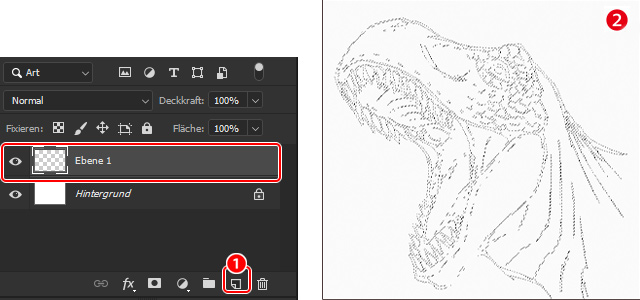 Erstelle nun eine neue Ebene, um auf dieser die Linienzeichnung zu erstellen.