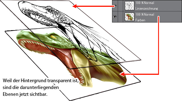 Um das Kolorieren zu erleichtern, können diese Linien „extrahiert“ werden, indem der weiße Hintergrund transparent gemacht wird.