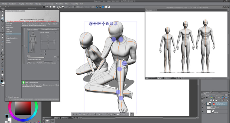 Die Zeichensoftware CLIP STUDIO PAINT verfügt über 3D-Zeichenfiguren mit frei anpassbaren Körperformen, -größen, -proportionen und Posen sowie Händen. Mit 3D-Zeichenfiguren als Vorlage können Illustrationen – von der Skizze über die Linienzeichnung bis hin zum Tuschen – ganz einfach erstellt werden! Für PC und iPad auf verschiedenen Sprachen verfügbar.