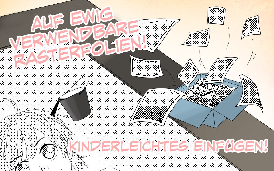 Effektlinien dienen dazu, den Blick des Betrachters anzuziehen. Bei spezieller Comic- und Manga-Software sind die Dicke und Größe dieser Linien frei anpassbar. Für einen effizienteren Arbeitsablauf empfiehlt es sich außerdem, immer direkt die passenden Farbmuster und Effektlinien zu den Rastermaterialien zu kaufen.