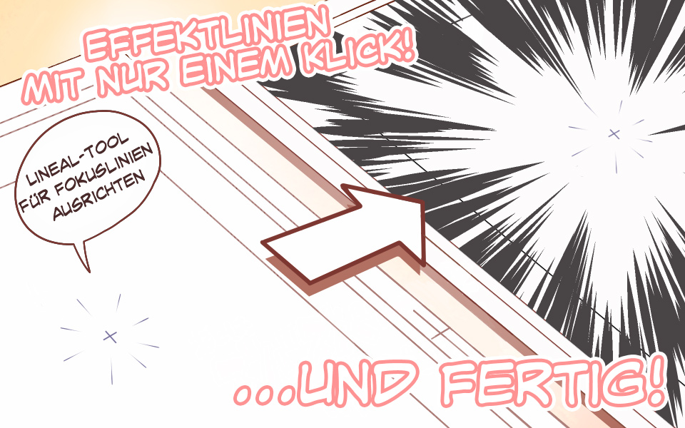 Sobald man den Dreh raus hat, kann man natürlich auch auf die herkömmliche Weise alle möglichen Effektlinien zeichnen. Aber genau wie beim Tuschen besteht hier die Gefahr, dass die Linien verschmieren. Darüber hinaus ist es äußerst schwer, Effektlinien zu korrigieren, wenn man sich einmal vermalt hat. Beim digitalen Zeichnen gibt es hingegen praktische Tools, mit denen du im Handumdrehen wunderschöne Effektlinien kreieren kannst!