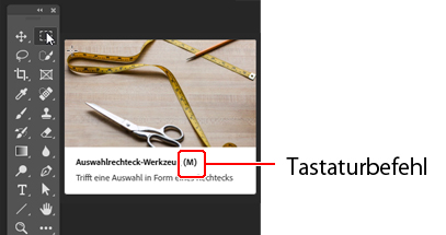 In Photoshop und CLIP STUDIO PAINT erfährst du den Tastaturbefehl zum Aufrufen eines Tools, indem du mit der Maus über das entsprechende Tool fährst.