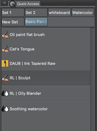 Meine CLIP STUDIO PAINT Pinsel: Flacher Ölfarbenpinsel, Katzenzunge, Modellierungspinsel und Ölmixer