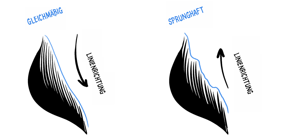 Tipp 3: Bewege deine Feder fürs Schraffieren in deine geschwärzten Bereiche, nicht von ihnen weg!