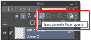 Zum Schluss füge ich den Linien noch Farbe hinzu. In der [Ebene] Palette findest du eine Option namens [Transparente Pixel sperren]. Wenn du darauf klickst, wird jedes sich auf der Ebene befindliche Bild auf dessen Linien beschränkt.