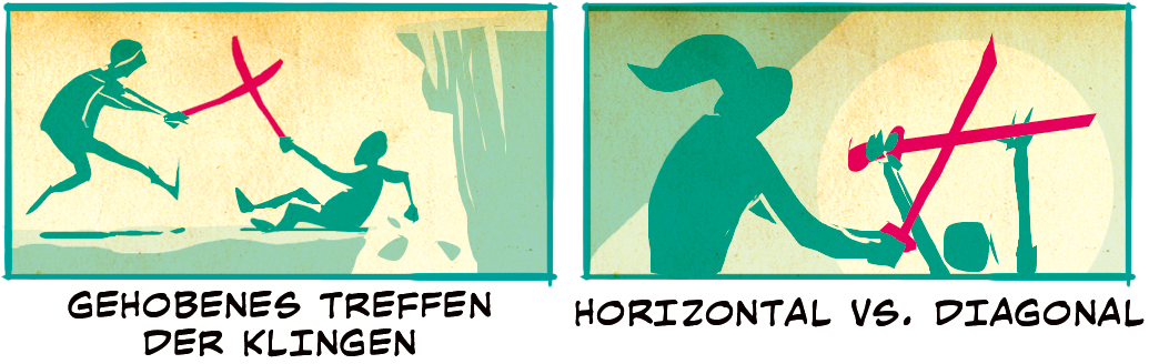 Weitere Optionen von ausdrucksstarken Szenen sind Gehobenes Treffen der Klingen und das dominante Horizontal vs. Diagonal.
