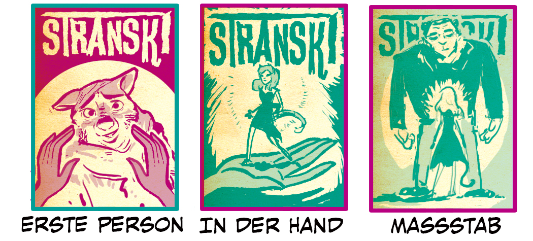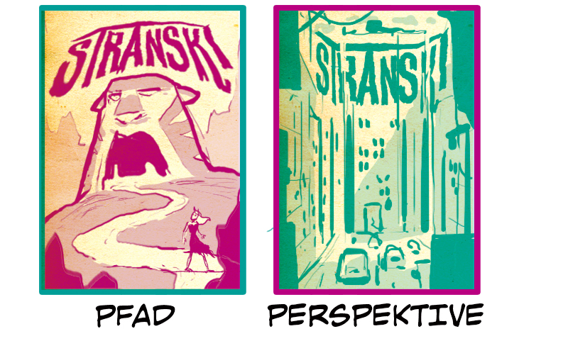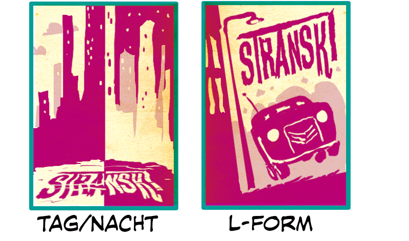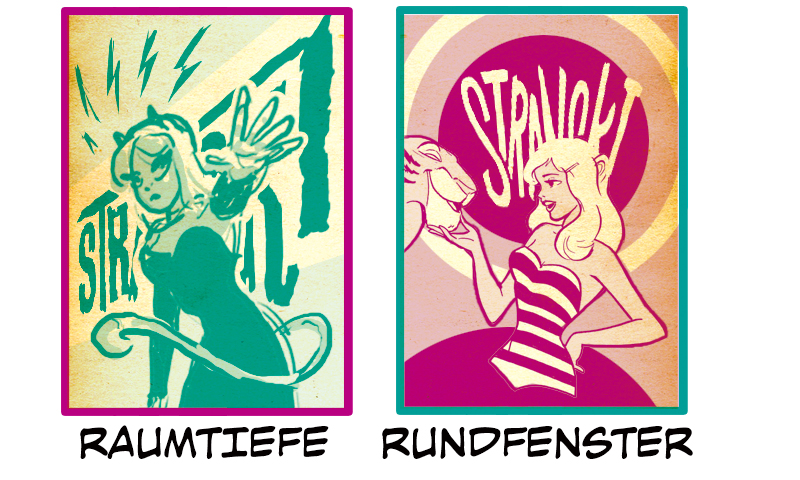 Raumtiefe & Rundfenster sind vom Aufbau her ähnlich, und zwar in Bezug auf die Platzierung des Charakters: Der Oberkörper ist aus einem bestimmten Winkel nach vorne gerichtet. Die Logos sind auch insofern gleich, dass sie an den Aufbau des jeweiligen Covers angepasst sind und mit den Figuren und Elementen um sich herum im Einklang stehen. Das Logo der Raumtiefe folgt der Bewegungslinie, die als verlängerter Arm des Charakters fungiert. Sowohl der Schwanz vorne als auch die Blitze oben sind gute Möglichkeiten, den negativen Raum über und unter der Kombination aus Charakter und Logo auszugleichen. Die Kombination aus Charakter und Logo des Rundfensters ergänzen sich in Kontrast und Design. Da das Logo auch durch den Kopf des Charakters etwas verdeckt wird, bringt der Betrachter beide Elemente zusammen.