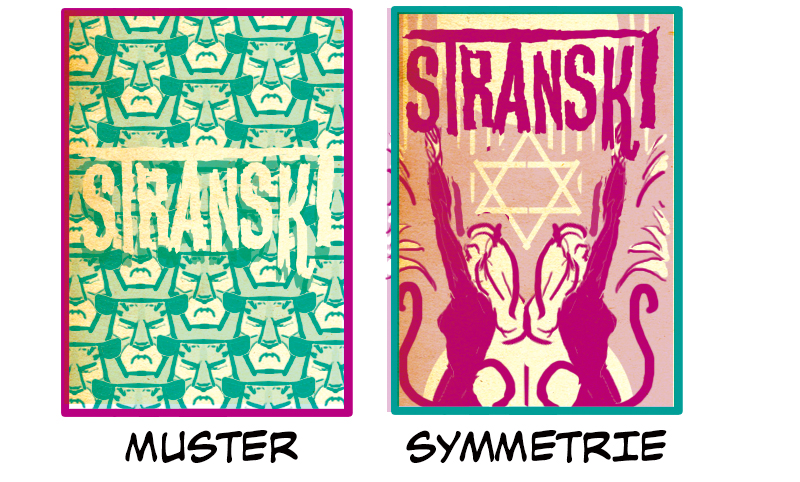 Muster & Symmetrie sind gute, dekorative Alternativen zu traditionellen Titelmotiven. Sich übergangslos wiederholende Muster können das Auge ganz schön beanspruchen, weshalb das Logo in Muster schlicht in weiß gehalten ist. Dies hilft, nicht nur vom Muster abzulenken, sondern auch, es so hervorzuheben, dass es lesbar ist. Die Symmetrie ermöglicht ein traditionelleres Comic-Cover, das Charaktere wie in den anderen Beispielen enthält. Trotzdem behält es die dekorative Note wie in Muster bei, während du deinem Publikum etwas visuell anderes bieten kannst.