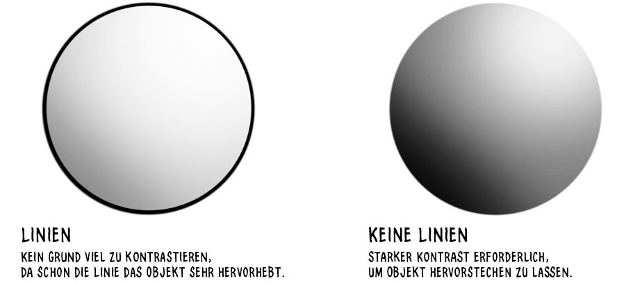 Im Manga-Stil sind es die Linien, die Objekte voneinander abheben. Deshalb besteht keine Notwendigkeit, Dinge mit Farbe hervorzuheben. Der Hauptgrund, warum ich den ursprünglichen Umriss verschwinden lasse, ist einfach, weil ich ihn nicht brauche. Tatsächlich füge ich gerne Linien hinzu, weil es einen Eindruck zwischen Manga und Realismus erweckt – ein Pluspunkt des realitätsnahen Zeichenstils.