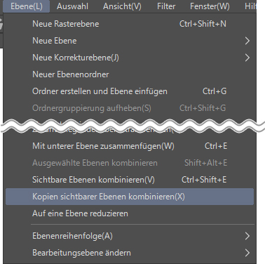 Verwende den Kopien sichtbarer Ebenen kombinieren Befehl, um alle Ebenen zu einer neuen Ebene zusammenzufügen. Dupliziere sie dann.