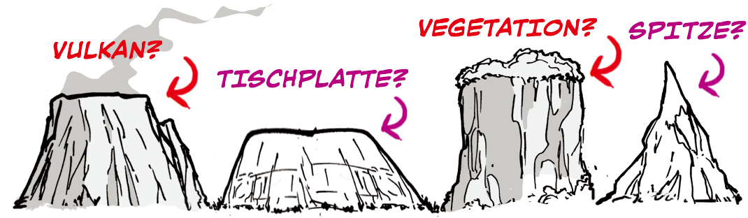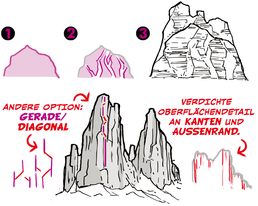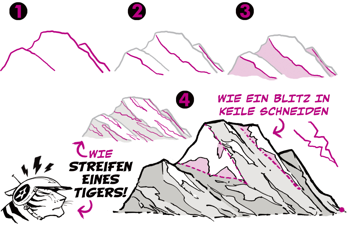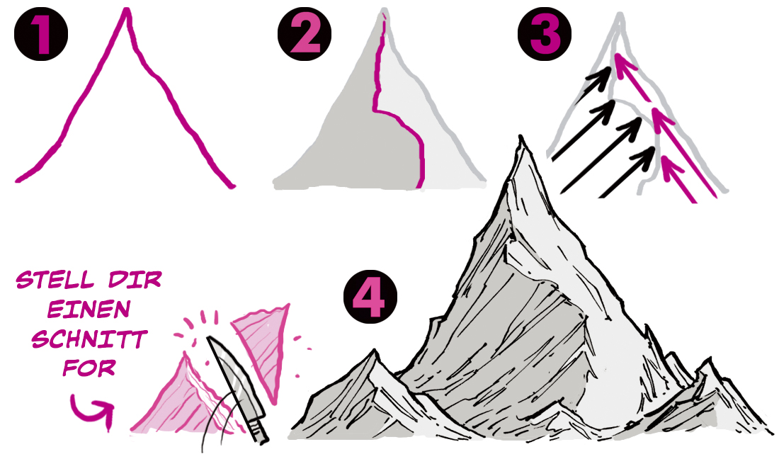 Schauen wir uns einige Designideen an, die helfen, das Volumen deines Berges zu beschreiben: