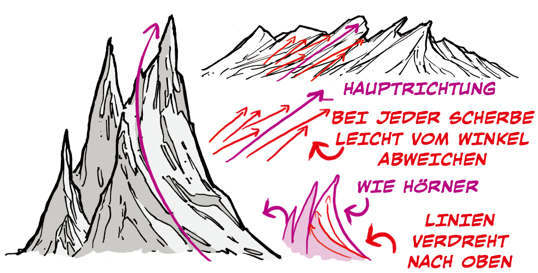 Gestalte deine Gebirgszüge dramatisch, indem du sie als aufgestellte Scherben betrachtest.