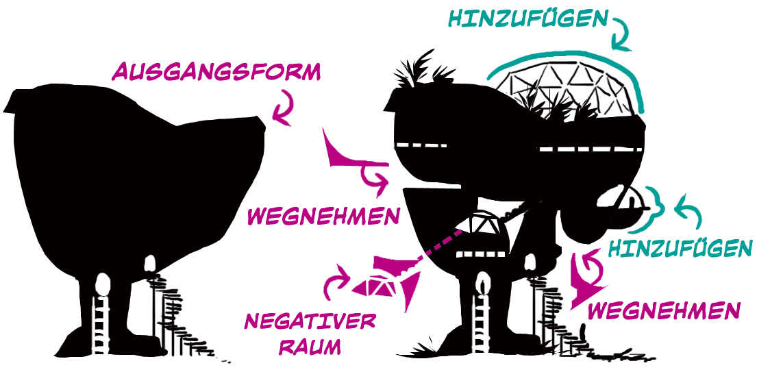 Es hilft, dir deine Grundformen wie Tonblöcke vorzustellen, in die du reinschnitzt und etwas hinzufügen kannst, anstelle einer flachen Form mit Farbe.