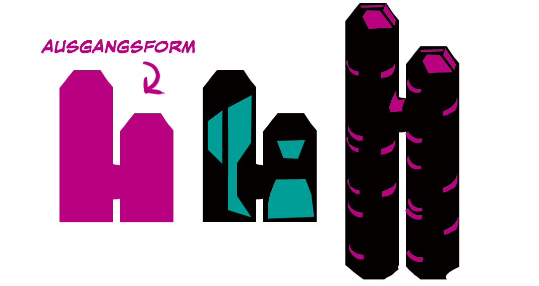 Bei Stadtlandschaften eignen sich Gebäude sehr gut, um eine Perspektive in einer Szene anzudeuten, die irgendwohin in die Stadt führt. Eine angedeutete Perspektive kann mit beliebigen Formen erzeugt werden.
