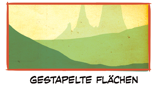 Hier ist ein Beispiel für eine diagonale Komposition, bei der jede der Hintergrundebenen eine andere Form in der Umgebung hat, aber alle derselben Diagonale folgen. Pass aber auf, dass jede Diagonale leicht unterschiedlich ist, wodurch die Komposition für das Auge interessant bleibt und so verhinderst du, dass Formen zu einer verschmelzen.
