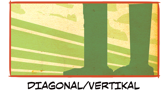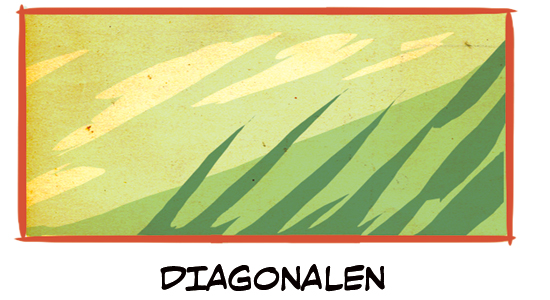 In diesem Beispiel sehen wir auch Diagonalen, aber nun aus einem niedrigen Kamerawinkel, der suggeriert, dass die Figur über die Seite eines Hügels klettert. Dies ist auch eine sehr dynamische Einstellung für Charaktere, die sich mit großer Geschwindigkeit bewegen.