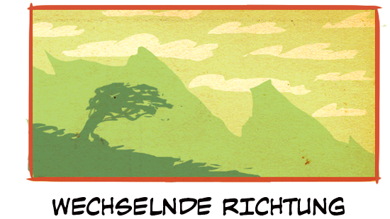 Hierbei wird die oben beschriebene Vordergrundebene verwendet, aber der Vordergrund, der Mittelgrund und der Hintergrund werden absichtlich in unterschiedliche Richtungen umgewandelt. Diese Art von Zickzack-Muster ist sowohl dynamisch als auch dazu geeignet, eine abenteuerliche Reise anzudeuten, die dem Charakter bevorsteht.