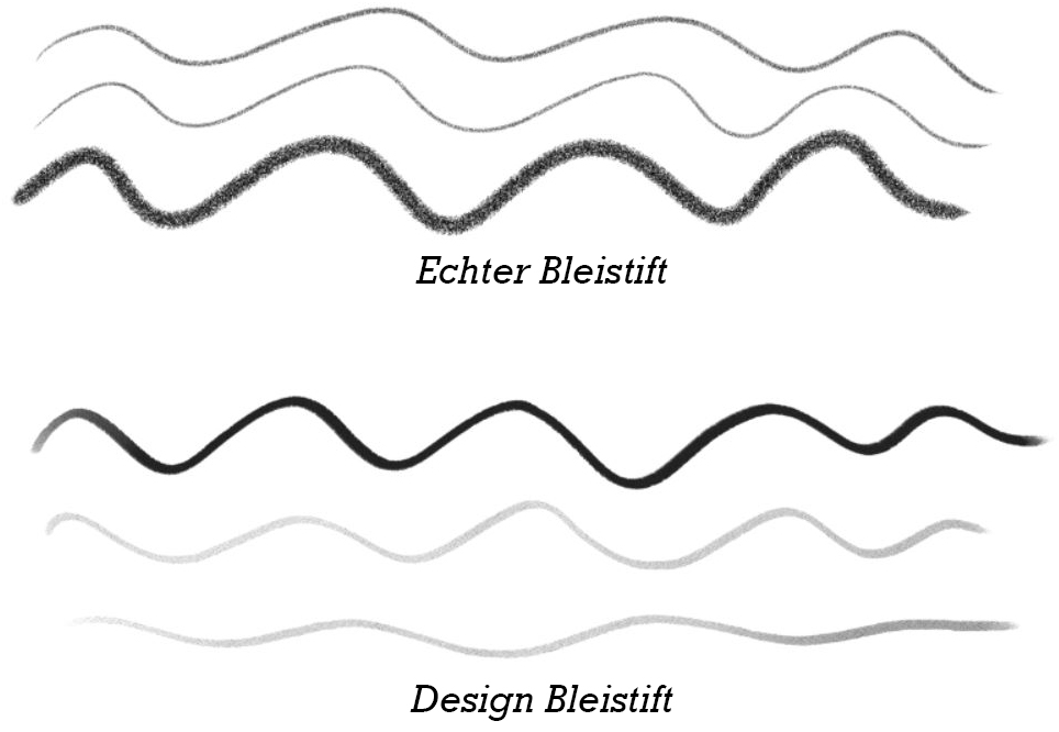 Zum Skizzieren verwende ich gerne Pinsel mit Textur wie den „Echten Bleistift“ oder den „Design Bleistift“. Ich liebe ihre realistische Linienführung, als würde ich auf Papier zeichnen.