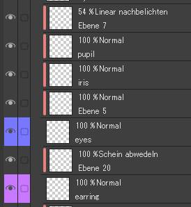 Es ist wichtig, sich an das Arbeiten mit Ebenen zu gewöhnen, anstatt alles auf einer einzigen Ebene zu zeichnen. Die Grundlagen, um diese Effekte zu erhalten, bestehen darin, die Funktion der „Schnittmaske zur Ebene darunter“, das Auswahl-Tool und die Füllmethode für die Ebenen zu beherrschen.