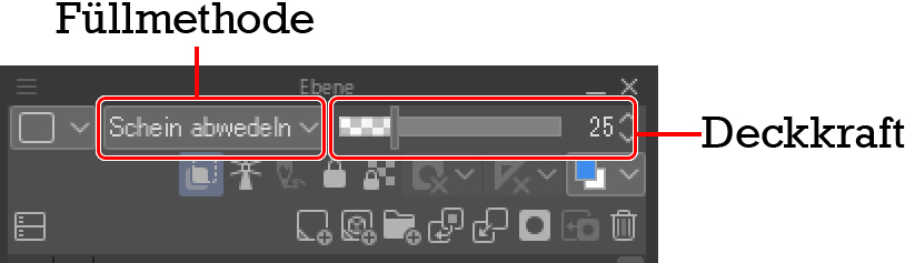 Wenn ich alle Bereiche koloriert habe, ändere ich die Füllmethode und wähle die aus, die am besten zu meiner Illustration passt. In meinem Fall habe ich sie auf „Schein abwedeln“ mit einer Deckkraft von 25% eingestellt.