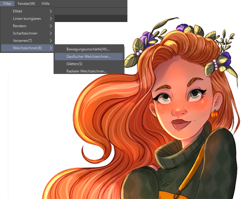 Gehe zu Filter, tippe oder klicke auf Weichzeichnen und wähle Gaußscher Weichzeichner aus.