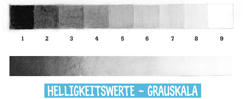 Bereite eine Grauskala mit maximal sechs Stufen vor, bevor du Licht und Schatten einbringst. Sobald du etwas Erfahrung damit gesammelt hast, kannst du weitere Stufen hinzufügen. Ich werde die Beleuchtung von einer direkten Lichtquelle malen, da es offensichtlicher und besser nachvollziehbar ist. Sobald du weißt, wie man mit direktem Licht umgeht, ist es viel einfacher, mit dem Umgebungslicht zu arbeiten.