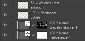 Finale Farbanpassungen kann man vornehmen, indem man Korrekturebenen benutzt. Diese werden auf alle Ebenen, die darunter liegen, angewandt. Ich benutze oft zum Schluss Farbbalance und Gradationskurven, um die Farben im ganzen Bild, oder in Teilen davon stimmiger zu machen.