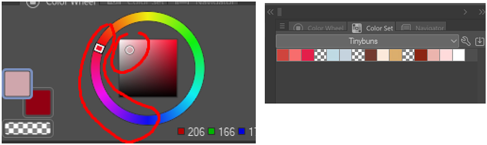 Da ich schon einige Illustrationen mit den Tinybuns erstellt habe, habe ich für beide Hasen festgelegte Farben, die nur durch Licht oder Schatten etwas abgeändert werden. Die Grundfarben an sich bleiben immer gleich. So kann ich ähnliche Illustrationen erstellen, ohne jedes Mal nachschauen zu müssen, welche Farben jetzt wo hinkommen.