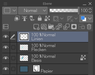 Erstelle dann eine neue Ebene „Basis 0“ und lege sie unter die Ebene „Basis”. Auf dieser Ebene male den inneren Teil in einem dunkleren Grau.