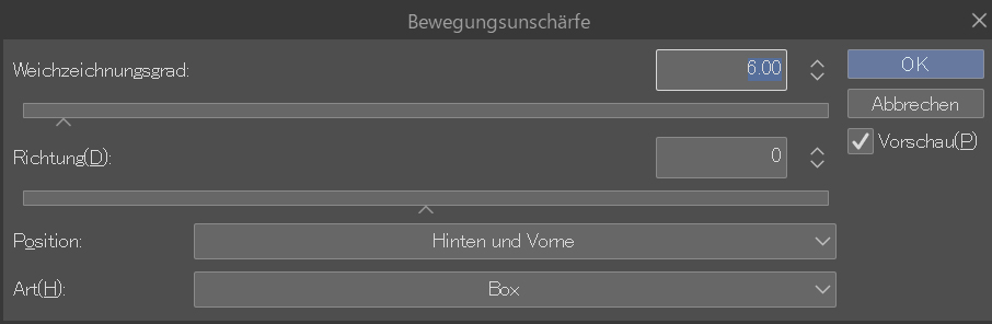 Filter > Weichzeichnungsstärke > Bewegungsunschärfe